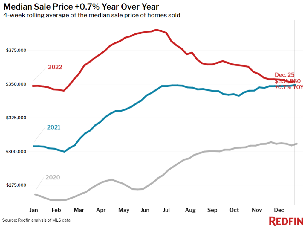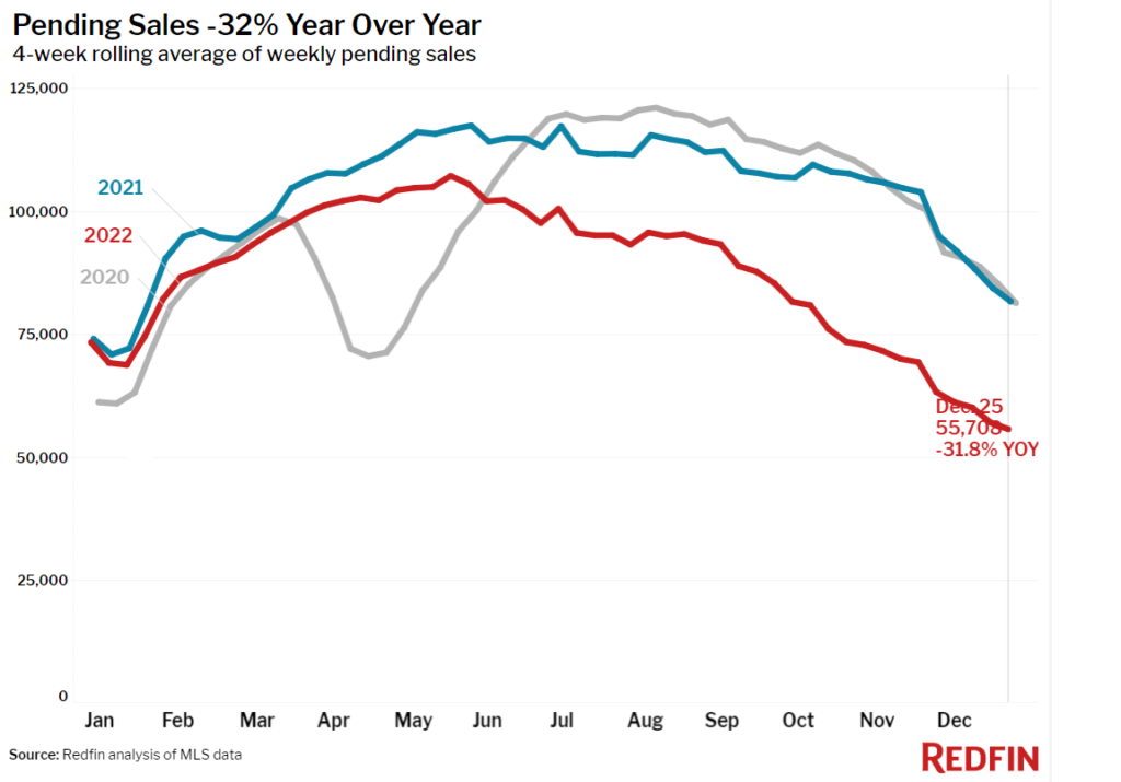 The first half of 2022 was defined by crazy over bidding in the housing market with steep increase in prices. The second half is subdued with buyers spooked and prices declining by over 10% in the Seattle metroplex region. Median sale price increased only 0.7% in 2022 over 2021 compared to 20% increase in 2021 over 2020. The rising interest rates lead to big drop in pending sales as mortgage payments jumped by 36%.
